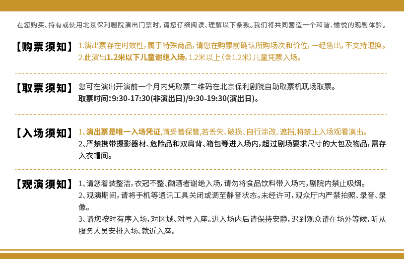 *此演出1.2米以下儿童谢绝入场,1.2米以上(含1.2米)儿童凭票入场