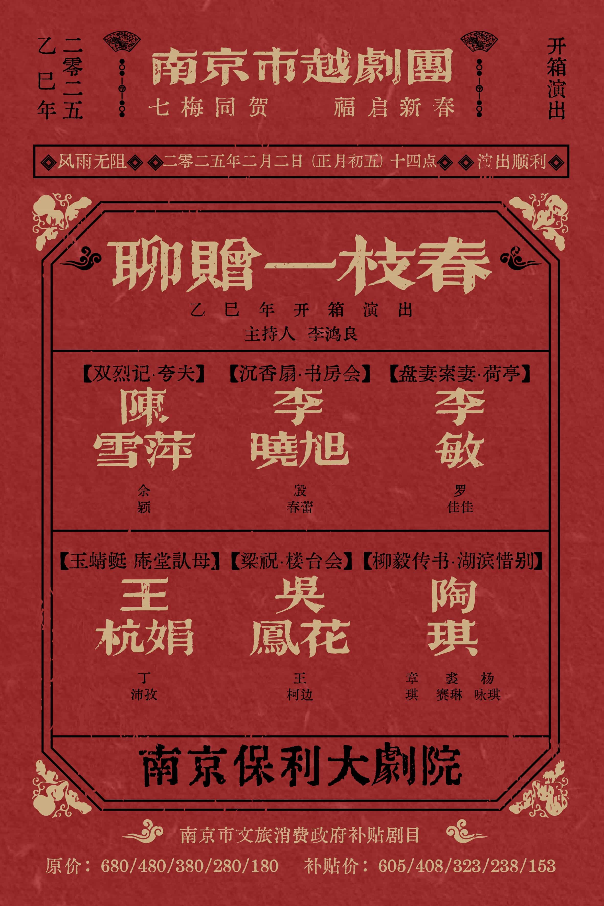[南京市] 【南京】南京市文旅消费政府补贴剧目·聊赠一枝春—南京市越剧团乙巳年开箱演出