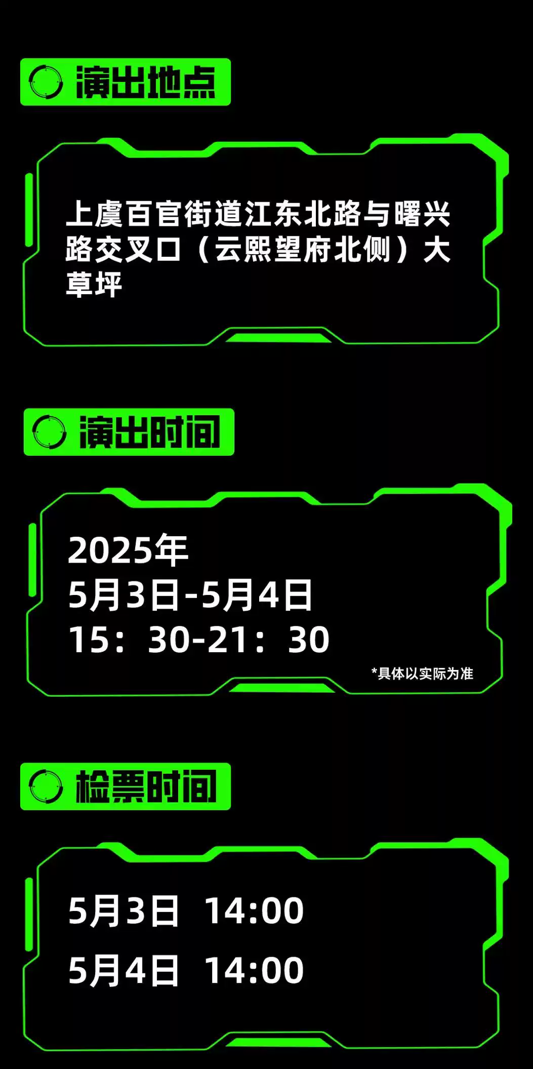 【绍兴】巍华新材氧气吉象音乐节-绍兴站,请勿携带武器、烟花爆竹、激光器、激光笔、饮料、酒水或食品入场。进场时请持票接受检验,检票后有序入场,不要窜区、窜位、跨越隔离带,禁止滞留在通道、随意走动、站立观看,以免影响他人观看。文明观看演出,遵守现场秩序、请勿翻越隔离设施,感谢您的支持!