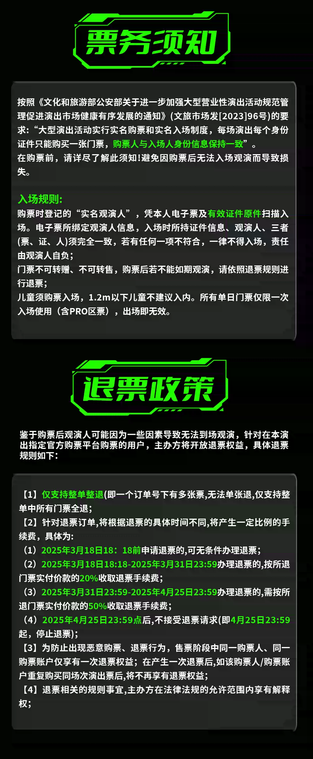 购票特别说明及常见问题